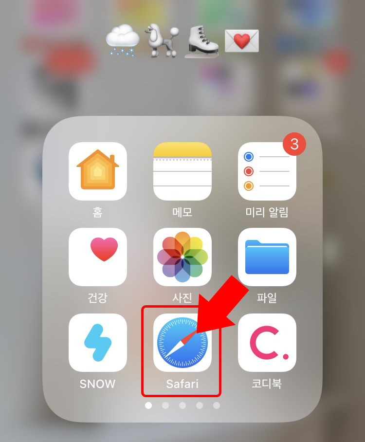 8. 여러 가지가 나오는데, 그중 [앱]이라고 쓰여있는 아이콘을 선택해주세요. 그러면 여러 가지 어플이 뜨게 되는데, [사파리]앱을 눌러줍니다.