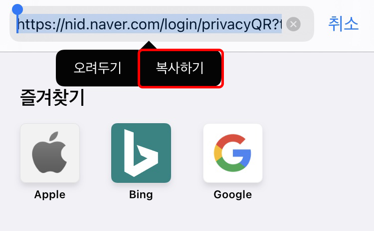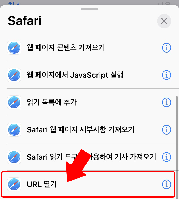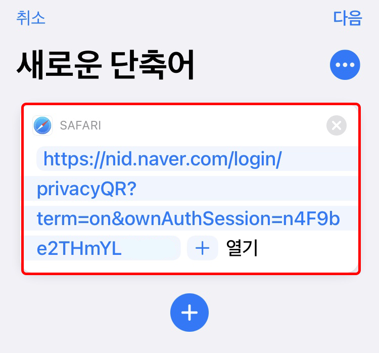 9. 여러 목록 중 URL열기를 눌러서 URL부분에 아까 복사해주었던 QR코드 주소를 붙여 넣기 해줍니다.
