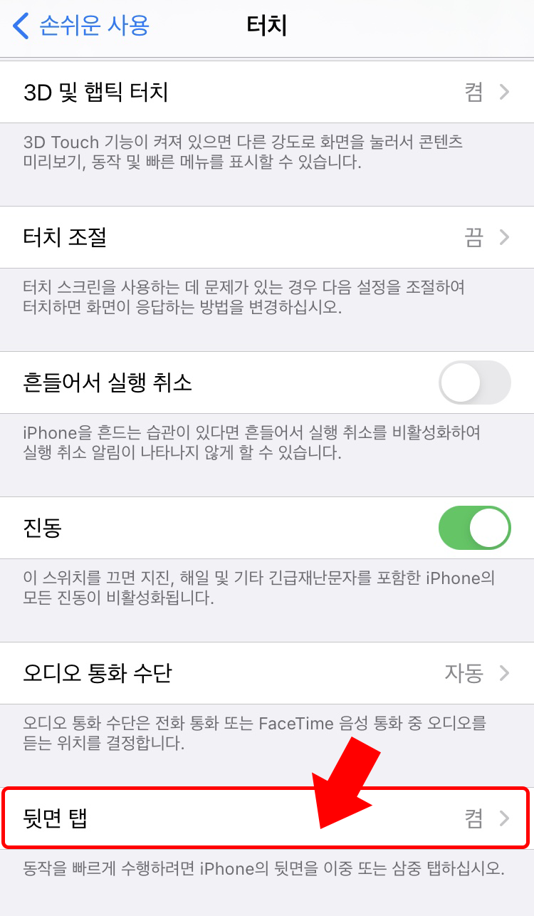 12. [손쉬운 사용]을 눌러서 들어간 후, 아래쪽의 [터치]를 선택해줍니다.
